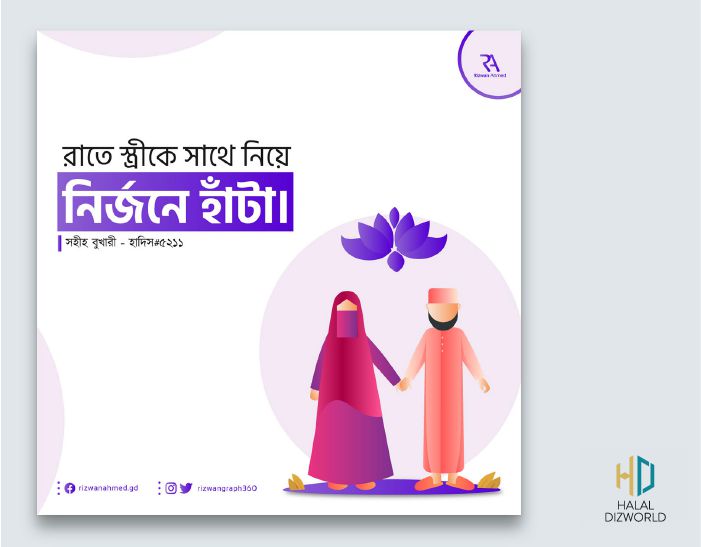 ৩। "রাতে স্ত্রীকে সাথে নিয়ে নির্জনে হাঁটা।" - বুখারী- ৫২১১
