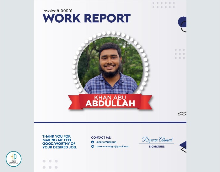 Halal Disworld একটি মানসম্মত গ্রাফিক্স ডিজাইন প্রতিষ্ঠান। নিখুঁত এবং নিপুনভাবে গ্রাহকের চাহিদা অনুযায়ী কলাকুশলী সেবা প্রদান করেন। আমার সবচেয়ে এই জিনিসটাই ভালো লেগেছে যে, তারা গ্রাহকের চাহিদাকে বেশি প্রাধান্য দেন এবং গ্রাহকের চাহিদা অনুযায়ী কাজ করেন। এবং আমার ব্যক্তিগত লোগোটিও আমার মনের মত করে বানিয়ে দিয়েছেন। আল্লাহ, উত্তম প্রতিদান দান করুন। আমিন।